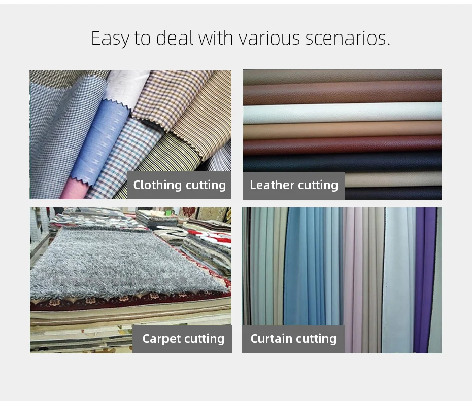 يستخدم هذا المنتج على نطاق واسع في الأسر أو المصانع المختلفة التي تحتاج إلى قطع 1-27 مللي متر (تعتمد على المواد) مثل الملابس الداخلية والملابس والمنسوجات والجلود والأحذية والقبعات والأثاث والتعبئة والتغليف ، حقائب اليد والحقائب وحقائب اليد وقماش الستارة والسلع الرياضية.